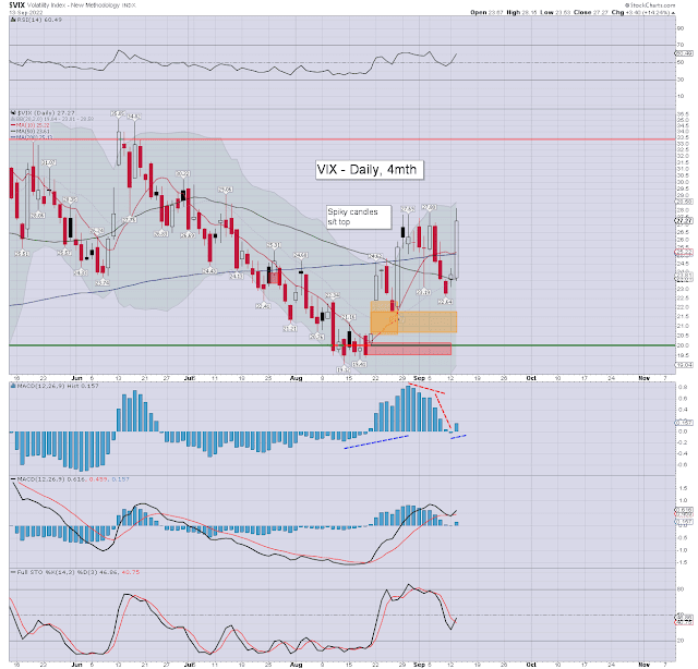 Volatility picked up, the VIX printing 28.15, and settling +14.2% to 27.27.